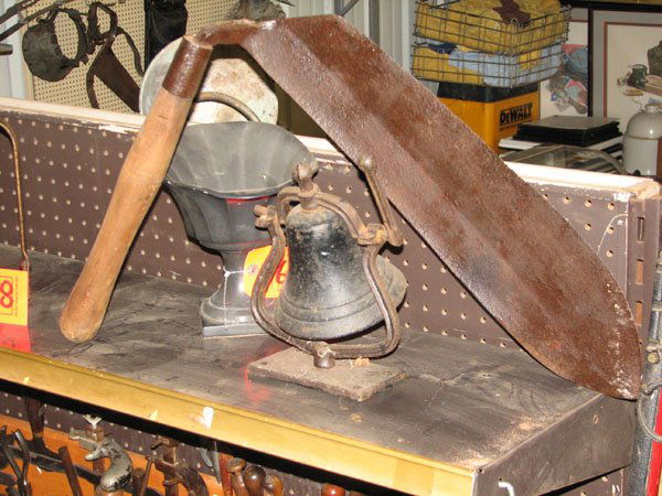 SMALL SCHOOL BELL, A PLANTER AND A MACHETE