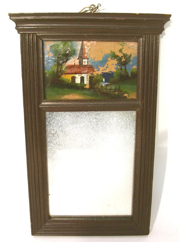 Small Sheraton mirror, c.1820, with reverse painti