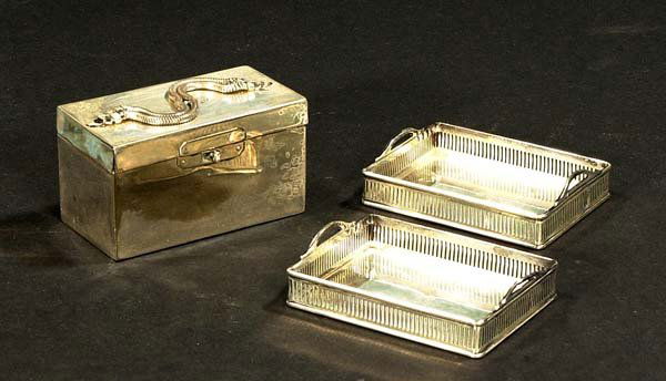 Large lot of misc. silverplate flatwaresMar 02, 2026Lot Silver Plate TraysMar 04, 2026Lot of Silverplated ItemsMar 04, 2026Lot 3 Pewtarex+ Serving Trays USA3 days LeftSterling Silver Assorted Tableware Lot, Including Tray, Shakers, & Spoon5 days LeftLot of sterling silver tableware. Various handled baskets and dishes, all except for one withoutMar 01, 2026A Diverse Lot of Silver Plated ItemsMar 03, 2026Silver Cigarette Cases3 days LeftVintage Silverplate Tidbit Handled Dish & Silvertone Candleholders6 hrs LeftSilver Buckle & Cigarette Case3 days LeftPair Vintage Silver Plated Trays With Box3 days LeftVintage Silver Plate Jewelry BoxMar 10, 2026ENGLISH AND ISRAELI SILVER PLATED SERVING TRAYSMar 01, 2026Large Vintage Silver Plated TraySilver Plated Serving Platters, One Covered - 18:Mar 08, 2026Two Sterling Silver Boxes2 days Left