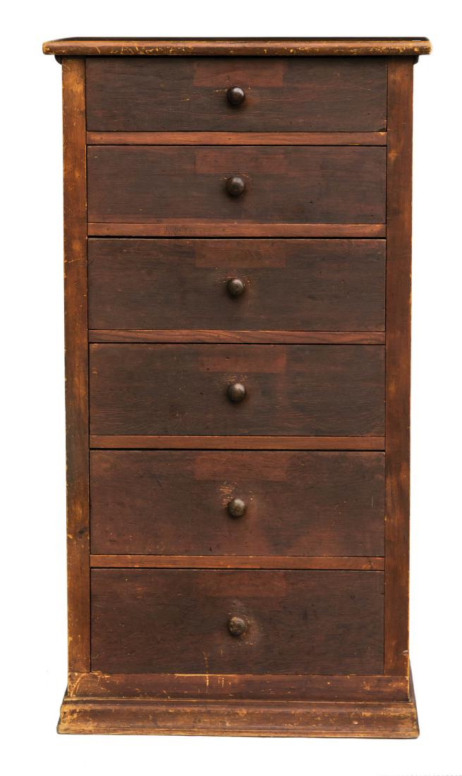 SMALL SIX DRAWER CHEST Pine, original red/brown stained