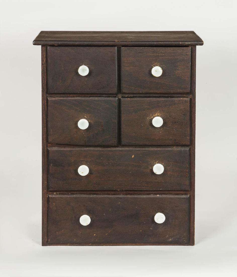 SMALL SIX DRAWER WORK CABINET Pine, original dark brown