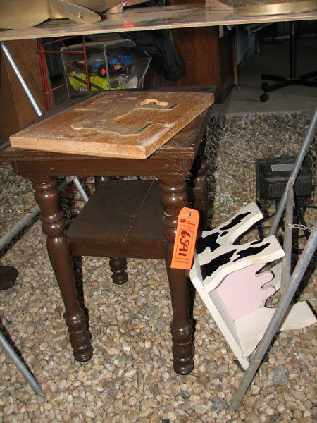 SMALL SQUARE TABLE A STOOL AND SMALL WOOD PUZZLE