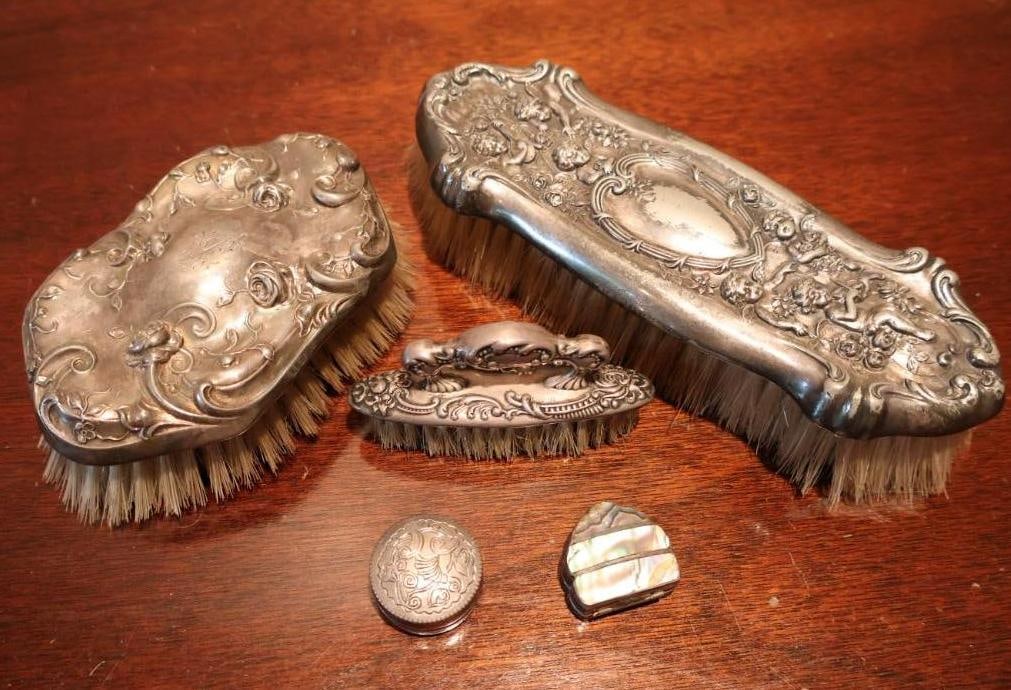 Small Sterling Brush and Silverplate Vanity Items
