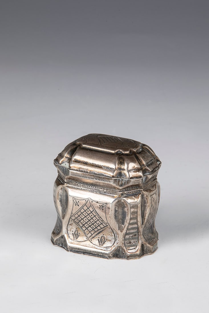 A SILVER ETROG BOX. Augsburg, 18th century.Feb 18, 2026A SILVER CIGARETTE BOX. 282 grams overall. 8.5 cm square.6 days LeftA continental silver box probably Hanau, late 19th / early 20th century, unattributed makerAntique Middle Eastern brass container4 days LeftA WILLIAM IV SILVER SQUARE BOXFeb 17, 2026Vintage Persian 875 or 900 Silver Round Box20 hrs LeftA Vintage Silver-Tone Footed Floral Trinket BoxFeb 15, 2026REED & BARTON SILVER PLATE DRESSER VANITY BOX W/ STAG HANDLES3 days LeftTang Dynasty Gilt Silver Dragon-Pattern Reliquary BoxFeb 12, 2026Handcrafted 925 Sterling Silver Modern Hammered Esrog Jewelry Box3 days LeftGerman Silver Till Box2 days LeftA SILVER ETROG BOX, POSSIBLY EASTERN EUROPE OR AUSTRIA-HUNGARY, 19TH CENTURYFeb 15, 2026MERIDEN QUADRUPLE PLATE GEARED SILVER PLATED JEWELRY BOX3 days LeftWilliam Nolan 1877 Sterling Silver Crystal Box with Etched Lid388 Lots AwayMid 19th Century Antique Engraved Sterling Silver Round Pill BoxEnglish Engraved Sterling Silver and Cut-Glass Keepsake Box3 days Left