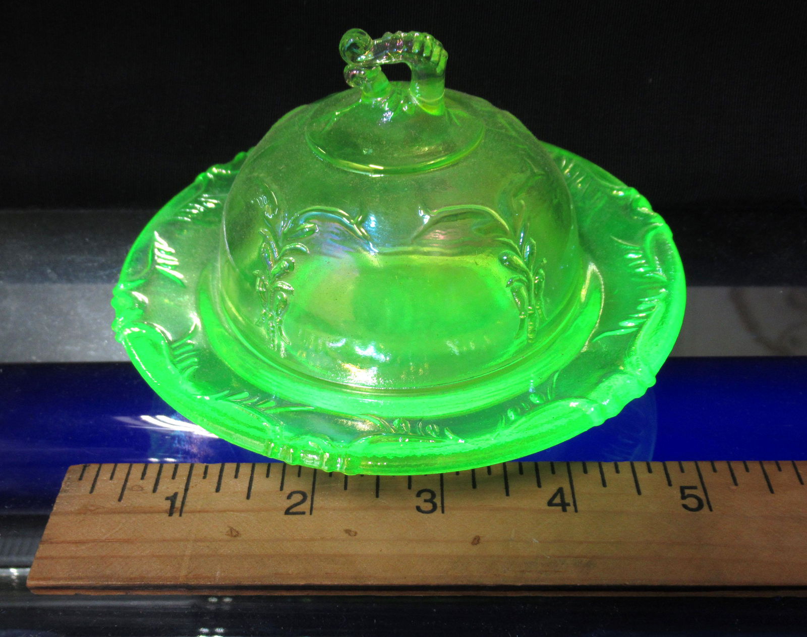 Small Vaseline Glass Butter Dish