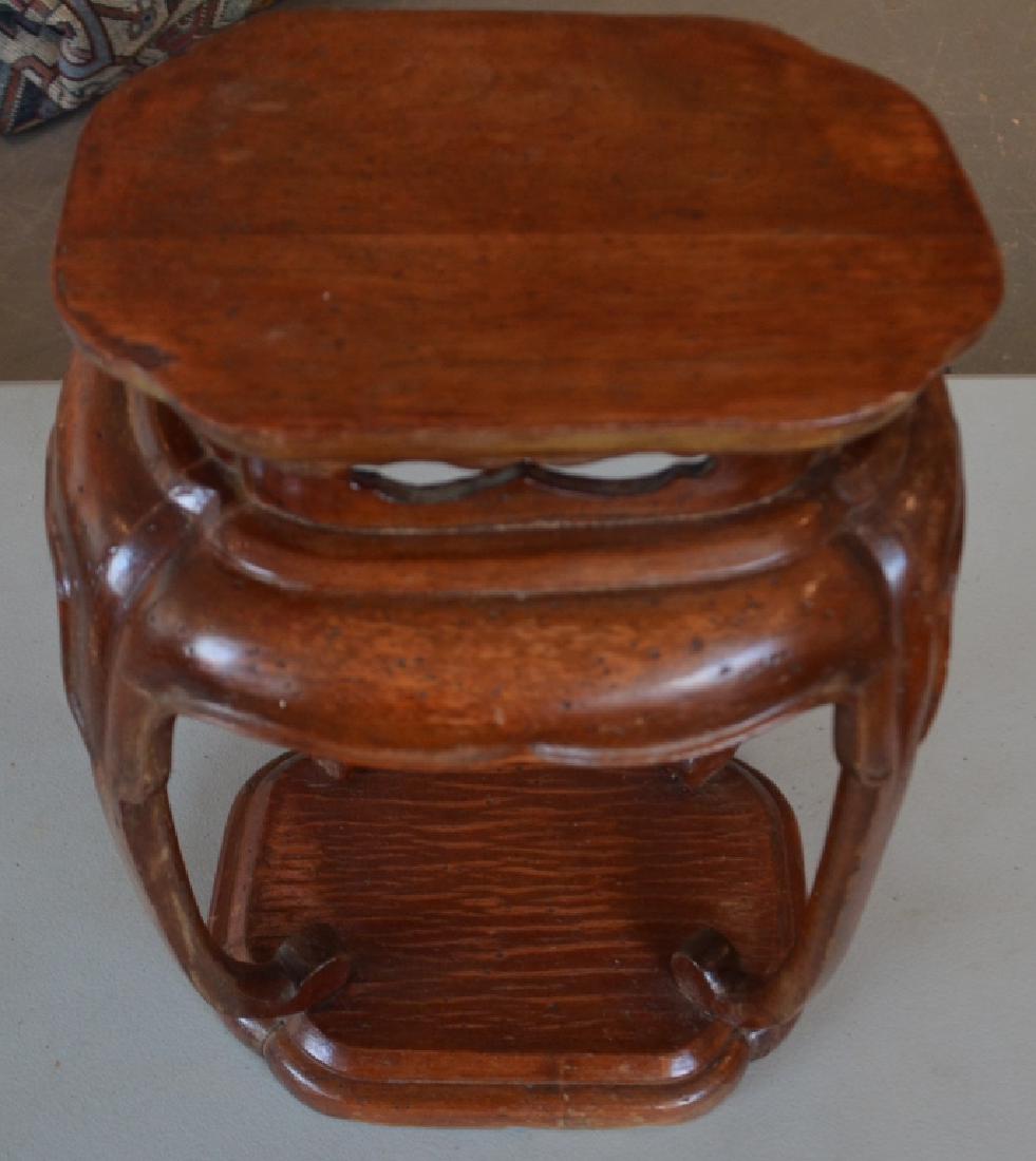 Chinese Hardwood Barrel Form Display Stand with Marble Top
