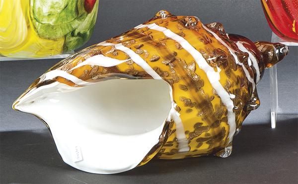 Vintage Murano Italy White Glass Overcast Amber Gl