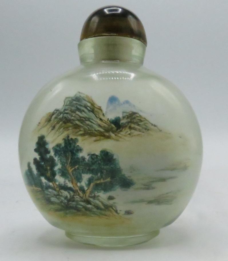 Snuff Bottle Peking Glass Interior Painted 3.5"