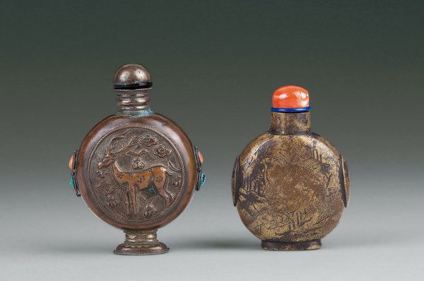 Two Chinese glass snuff bottles and a buffalo bone snuff bottle, Xianfeng mark, 19th C.Rob Michiels Auctions4.3(33)€250Mar 18, 2026