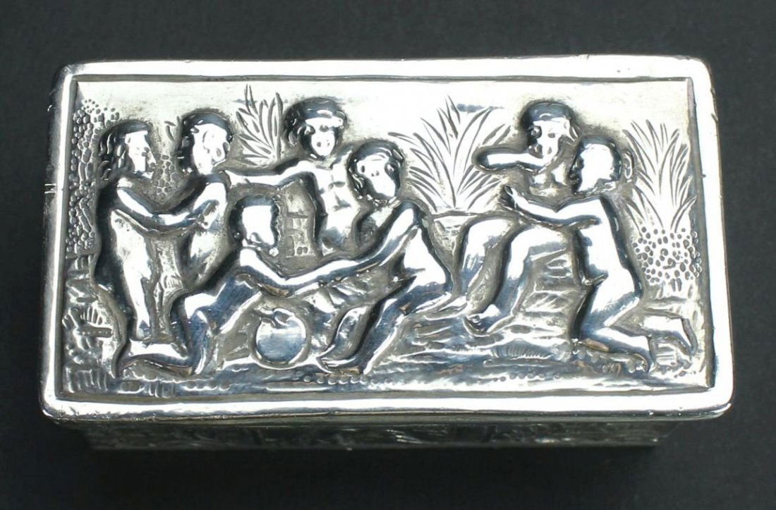 A Dutch Silver Snuff BoxMar 11, 2026Antique Russian Silver Cigarette Case4 days LeftRUSSIAN SILVER CIGARETTE CASE, fr. SOTHEBY'sMar 21, 2026Antique Continental Silver Tavern Scene Sterling Silver Trinket Box1 day Left5 Metal Tobacco & Snuff BoxesMar 14, 2026RUSSIAN SILVER CIGARETTE CASE, ALEXANDER II, fr. SOTHEBY'sMar 21, 2026English Engraved Sterling Silver and Cut-Glass Keepsake Box5 days LeftGerman Silver BoxMar 14, 2026Poole Sterling Silver Cigarette/Cigar BoxMar 07, 2026950 Silver Engraved Snuff Box, c. 1820, B&M Maker's Mark with Clover DeviceMar 08, 2026Thomas Phipps and Edward Robinson London Engraved Vinaigrette Women Box 1802Mar 15, 2026Silver Tobacco Snuff Box, The Western Wall.Mar 10, 2026American Silver-Tone Metal Cigarette Case5 days LeftRussian Silver Cigarette Case4 days LeftGorham Art Nouveau Sterling Silver Cigar Card Box 1900s5 days LeftANTIQUE FRENCH METAL ROCOCO SCENE JEWELRY BOX2 days Left