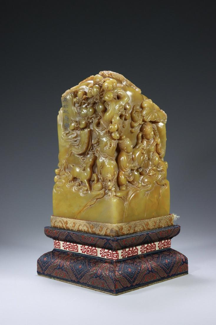 SOAPSTONE CARVED FIGURE PATTERN SEAL