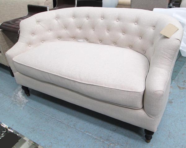 SOFA, two seater, buttoned back in oatmeal fabric,