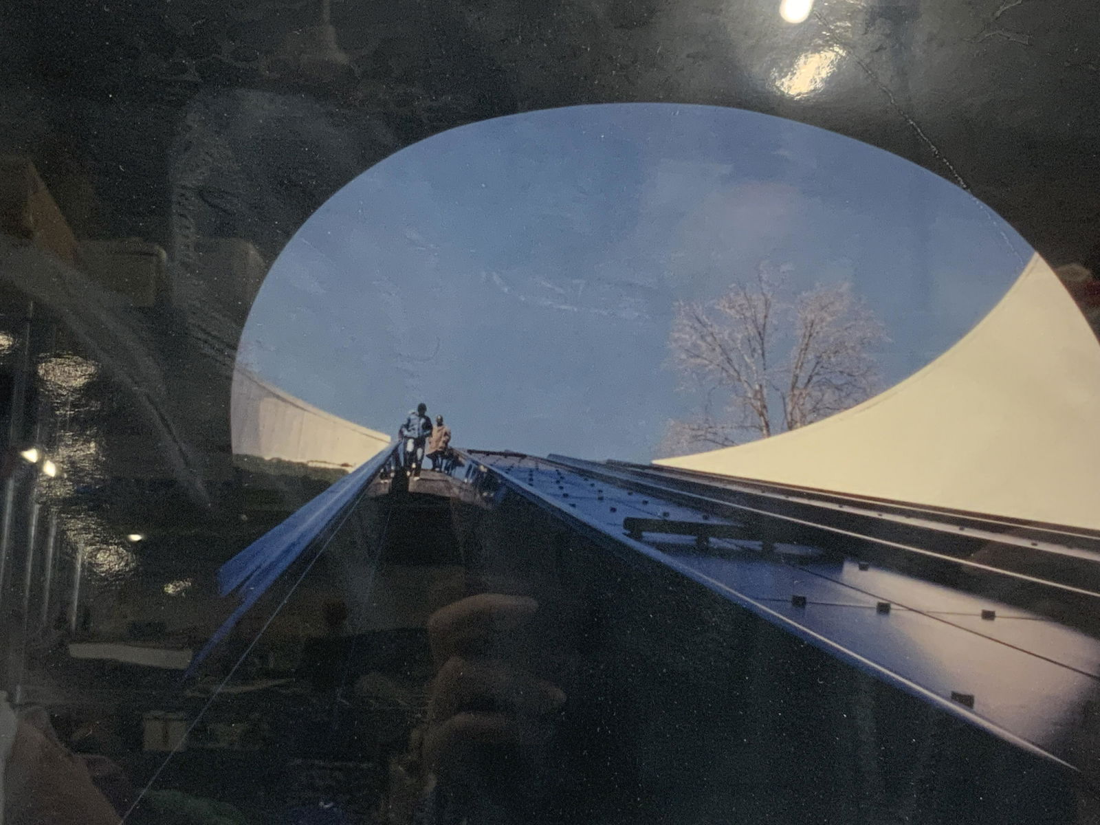 SoldSOL LEVITT Signed Vintage PhotographSOL LEVITT Signed Vintage Photograph, signed ‘S. LEVITT ‘88’, subject shows two people in an industrial setting with a blue sky behind them, in frame measures approx 13 3/4 x 17 1/2 in. Silver tSee Sold Price