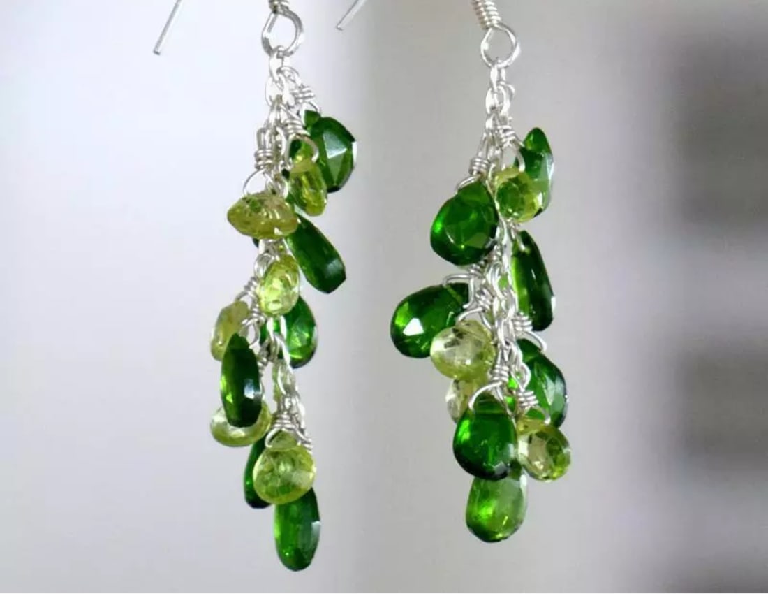 SOLID 925 SILVER EARRINGS - PERIDOT BEADS CHROME DIOPSIDE BEADS