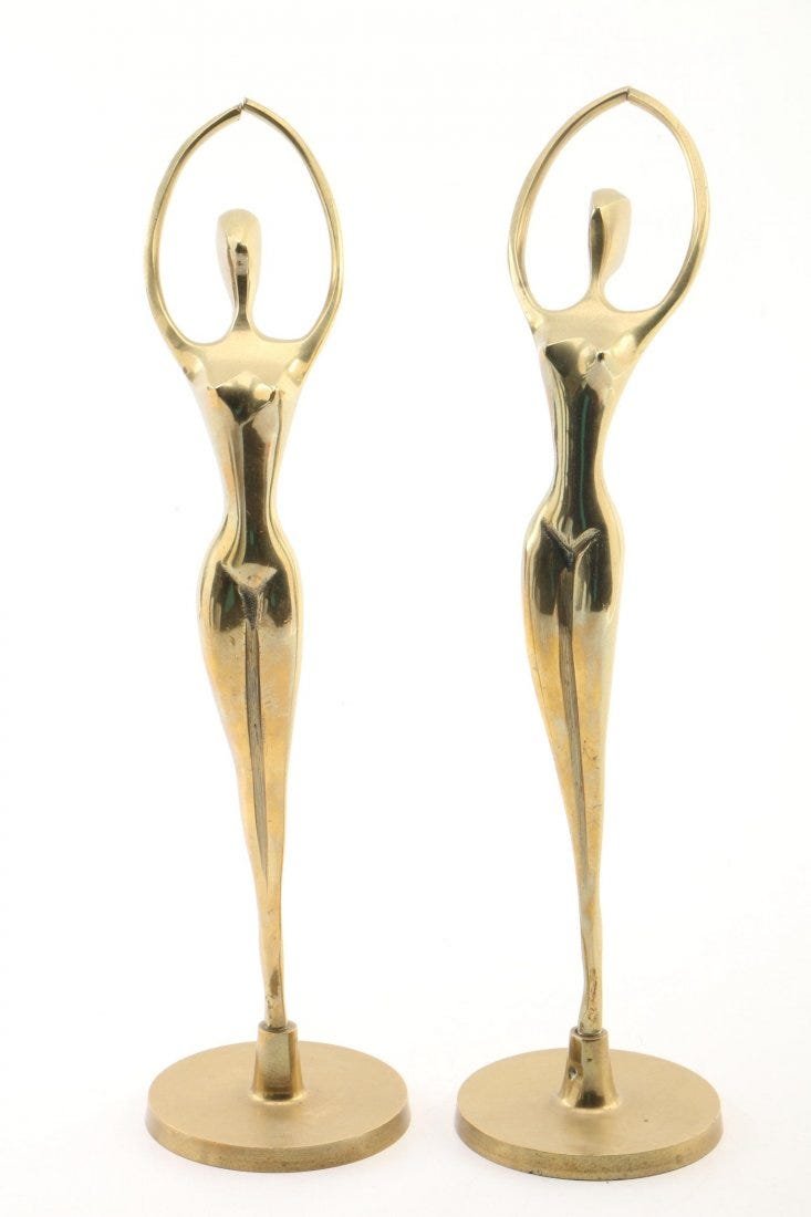 Pair of Vintage Brass Standard LampsPair of Vintage Brass CandlesticksMidcentury Modern Dual Dancers Painted Brass Sculpture6 days LeftTwo Russian Dancer Bronze Sculpture21 hrs LeftVintage 1980s Brass Abstract Sculpture 17in Tall6 days LeftA Pair of Exquisite Gilt Bronze Figure OrnamentFeb 27, 2026Pair of Vintage Solid Brass Swan SculpturesMar 15, 2026Pair of French Empire Bronze and Marble Figural CandlesticksMar 01, 2026A PAIR OF NEOCLASSICAL STYLE BRONZE STATUETTES, ENGLISH OR FRENCH, 19TH CENTURY,1 day LeftMarta Minujin Pair of Silverplated Bronze Sculptures H: 4. 8" & 3.8"Mar 01, 2026Bronze Sculpture Personnage "6 days LeftSolid Brass Abstract Sculptural Art Object with Organic Form, Mid-Century ModernFeb 27, 2026Dancing Figures SculptureMar 05, 2026Abstract Modern Brass Ibis SculptureMar 03, 2026PAIR OF AUSTRIAN BRONZES SIGNED KAUBA3 days LeftAFTER CEDRIC GIBBONS; A LARGE PAIR OF GILT BRASS FLOOR STANDING 'OSCAR' STATUES, CONTEMPORARY