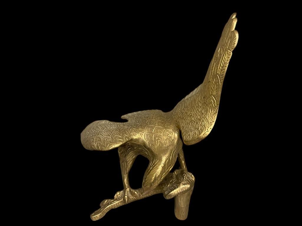 SOLID BRASS PERCHED EAGLE FIGURE ON TREE BRANCH MADE IN INDIA