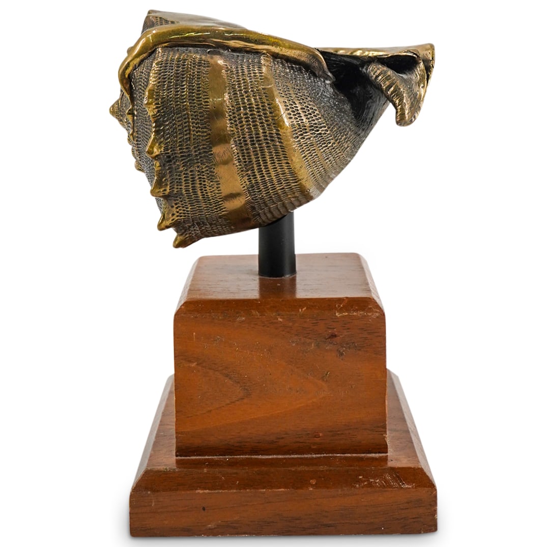 Solid Brass Shell Sculpture On Wooden Plinth Base