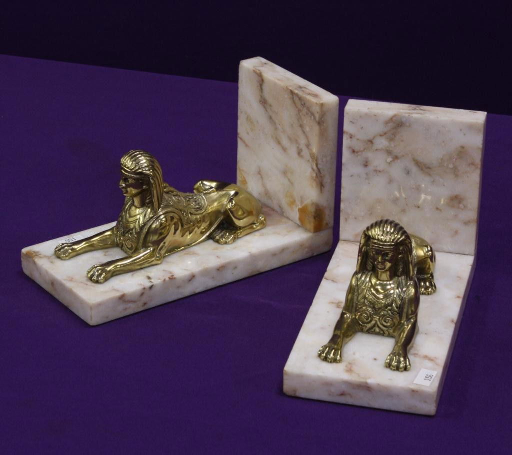 Solid Brass Sphinx and Marble Bookends