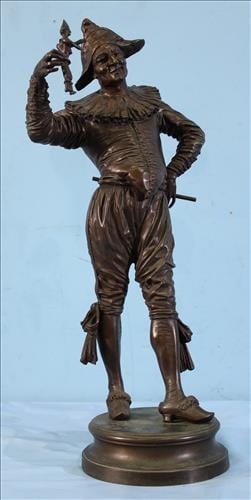 Solid bronze contemporary Jester sculpture with round base