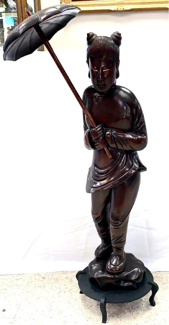 Solid Mahogany Geisha With Umbrella & Stand