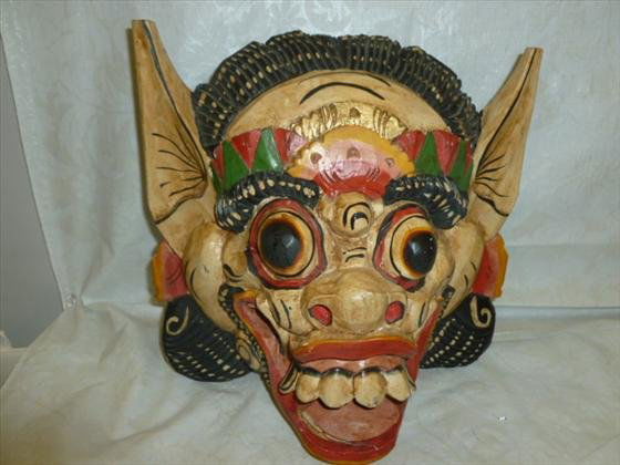 Solid one piece carved wood multi colored mask