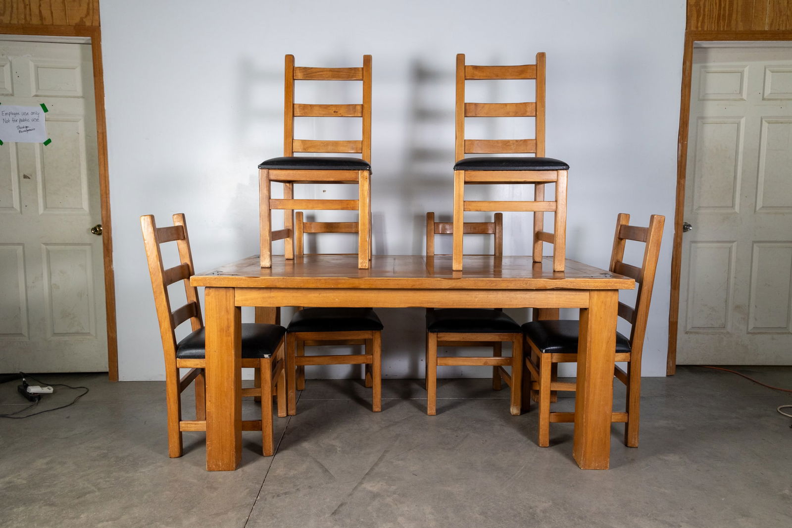 Solid Wood Rustic Farmhouse Dining Table with Six Chairs