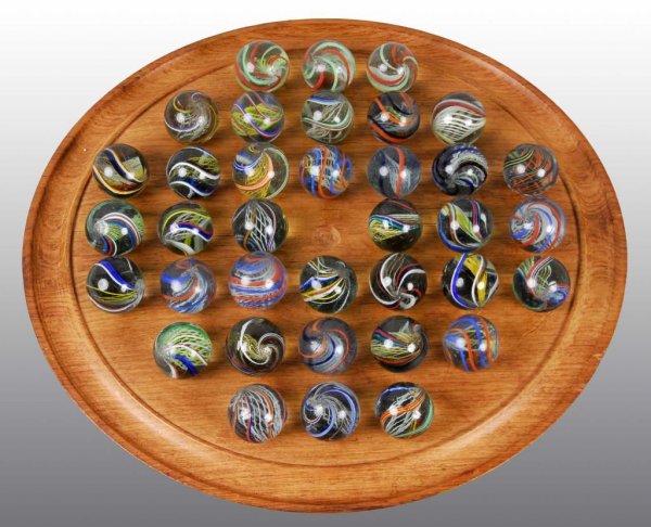 Solitaire Board with 36 Swirl Marbles.