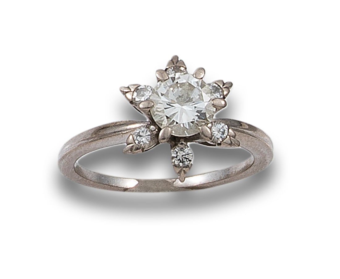 SOLITAIRE FLOWER RING WITH DIAMONDS AND WHITE GOLD