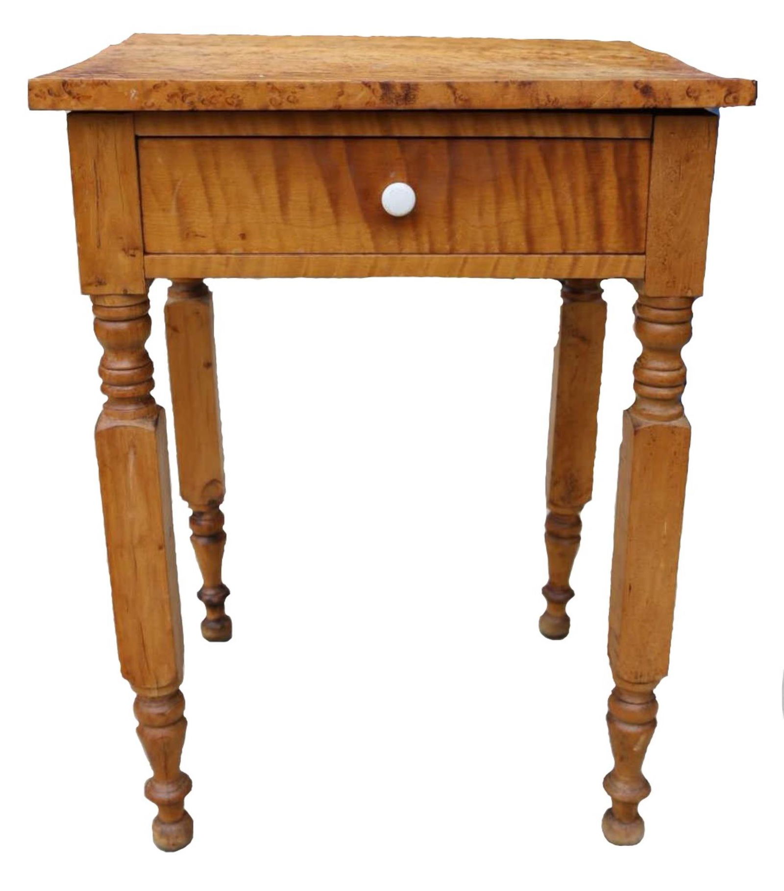 SOUTHERN ANTIQUE TIGER / BIRDSEYE MAPLE SIDE TABLE