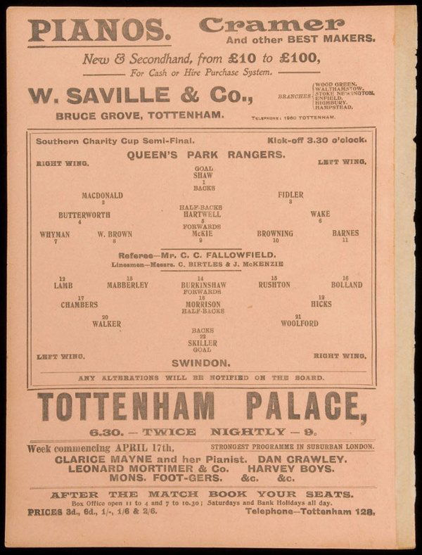 Southern Charity Cup semi-final programme played a