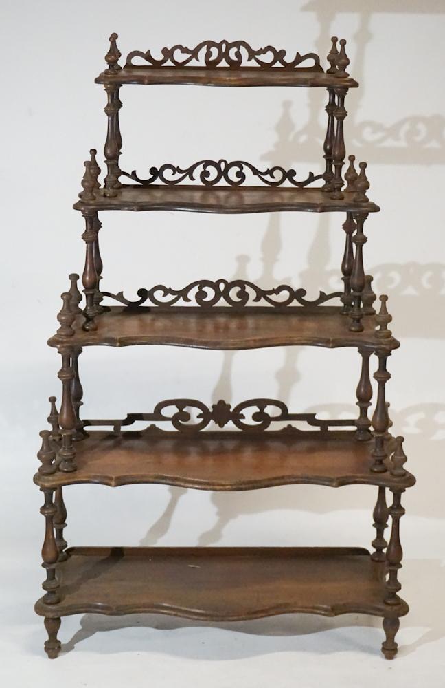 Victorian Antique Walnut Etagere 5 Shelves Cut Out Fretwork C1890