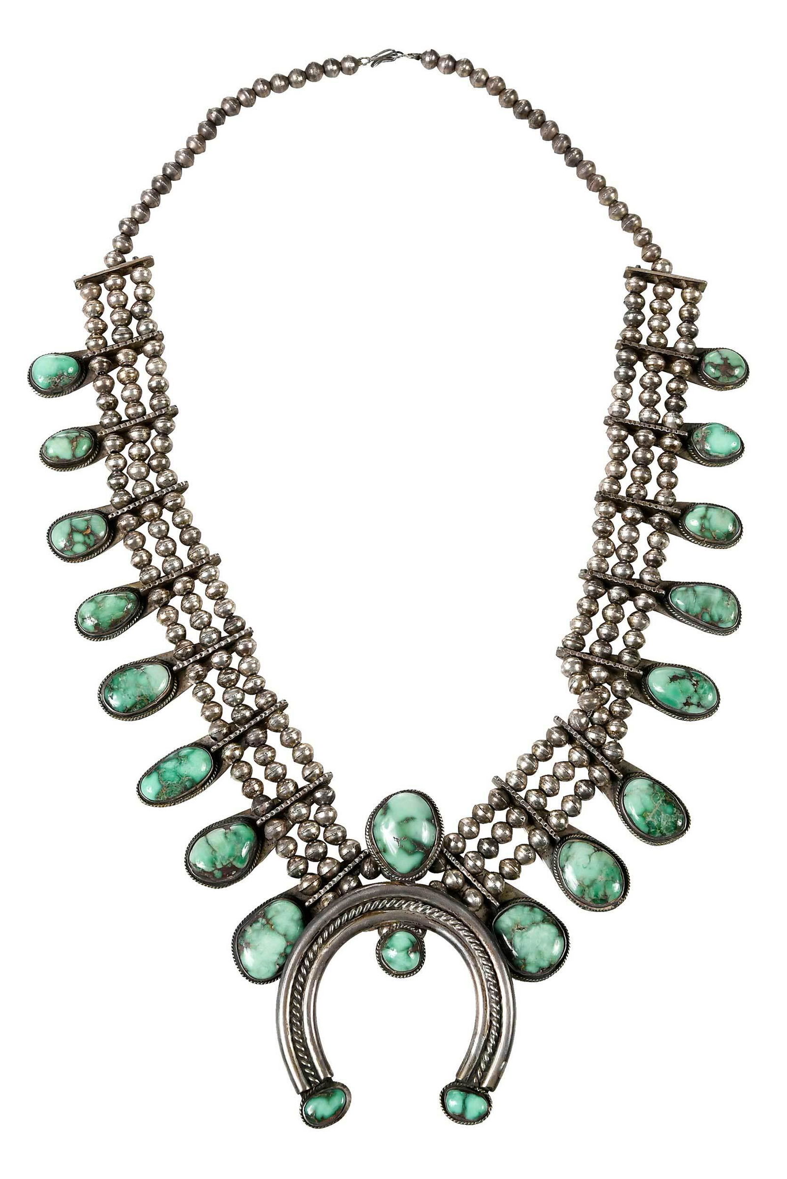 A Southwest sterling silver and turquoise squash blossom necklaceJohn Moran Auctioneers, Inc.4.7(501)$5006 days Left