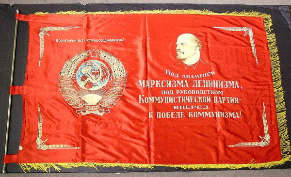 SOVIET RUSSIA TWO-SIDED CEREMONIAL FLAG, having pr