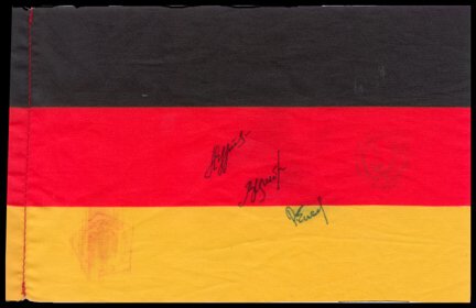 Ephemera Items, the Nazi Germany PeriodFeb 25, 2026Rare WWII Japanese Signed Good Luck Flag4 days LeftApollo 11 – Hand Signed American FlagFeb 17, 2026WWII German Luftwaffe Aces Rall, Galland & Krupinski Knights Cross Signed Book PlateMar 07, 2026WWII Japan Signed Rising Sun Prayer Good Luck Flag Yosegaki Hinomaru4 days LeftRegt US Colored Troops Survivor Reunion OH FlagMar 02, 2026VINTAGE 48 STAR UNITED STATES NATIONAL DESIGN FLAGFeb 28, 2026RARE 42 STAR AMERICAN FLAG4 days LeftScarce Original WWII Bringback Japanese Soldier Hinomaru (Meatball) Good Luck Kanji FlagWW2 German Motorcycle Dispatch at the Front With CertificationMar 02, 202646-Star U.S. Flag, 1908-1912, E.C.W.I.S.E., 5×8Feb 27, 2026German occupation Poland 1940 Generalgouvernement Complete Overprint Set Mint Scott N33–N46Mar 01, 20261923 Germany inflation surcharge Scott 280 mint bottom marginMar 01, 2026Two Vintage 48-Star American FlagsMar 07, 20261908 German Offices in China, 20 c OVP carmine, Ca Tientsin, Sc CHI 51Mar 01, 20261875 German Prize Shooting Certificate5 days Left
