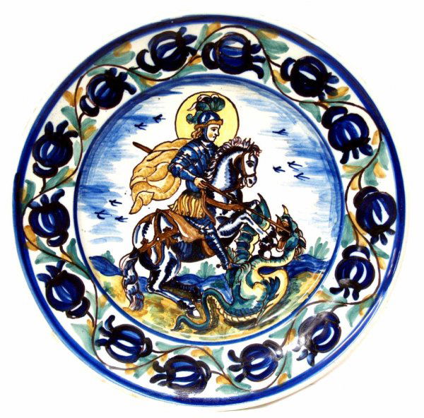 SPAIN POLYCHROME CERAMIC ST GEORGE DRAGON PLATE
