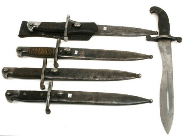 Lot Of Three BayonetsLot Of Five Bayonets With Scabbards Including German, Swiss, Czech, And YugoslavianLOT OF ASSORTED FOREIGN MILITARY RIFLE BAYONETS.Feb 26, 2026LOT OF 9 SURVIVAL / FIGHTING KNIVESFeb 21, 2026LOT OF 4: US WWI BOLO KNIVES.Mar 03, 2026LOT OF 8 FOREIGN MILITARY RIFLE BAYONETS.Feb 26, 2026LOT OF 4 GERMAN WWI & WWII BAYONETS.Feb 26, 2026LOT OF 3: DESIRABLE BRITISH SABER BAYONETS.Mar 03, 2026Lot of 5 Vintage Bayonets With ScabbardsLOT OF 6 SWEDISH M1896 MAUSER BAYONETS WITHFeb 26, 2026LOT OF VINTAGE STAG HANDLE FIXED BLADE KNIVESFeb 21, 2026LOT OF 6: US WWI-WWII MACHETES AND AXEMar 03, 2026LOT OF 2: JOHN EK COMMANDO KNIFE AND SOG FIGHTING KNIFE.Mar 03, 2026LOT OF 2: EARLY GERMAN MADE WILD BOAR FOLDING BLADE HUNTING KNIVES STAG HANDLES.Feb 25, 2026Lot Of 5 Military Knives And Bayonets With Scabbard And SheathsLOT OF 3: PRESS BUTTON KNIFE CO. AND PRESTO STERLINE DOUBLE BLADE SWITCHBLADES.Feb 25, 2026