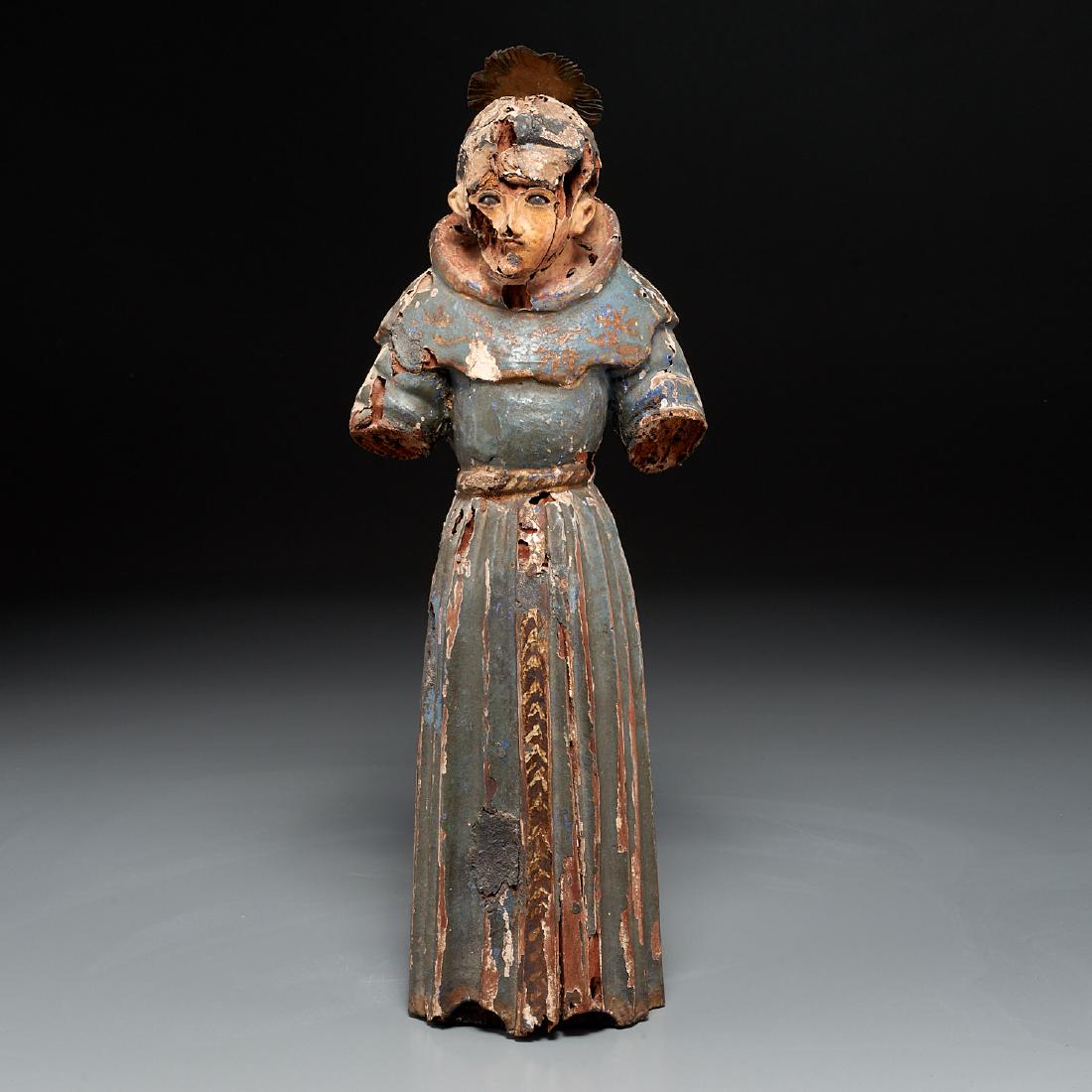 Large Romanesque Saint Augustine, Catalan or French Romanesque school , Pyrenées, Northern2 days LeftStanding Saint Polychromed Wood Sculpture, 19th C.Feb 26, 2026Guatemalan Religious Folk Art Saint Peter Santos4 days LeftExquisite Large Penitent Magdalene - New Spanish Colonial Anonymous Master, 17th Century2 days Left17th-Century Carved Wooden Religious Altar Statue - Saint Francis (Medium, Missing Arms)Feb 28, 2026Saint Roch with pilgrim's staff and dog, polychrome limewood, Southern Netherlands, 18th/19th5 days LeftSpanish Colonial Painted Wood Santos Figure2 days LeftAfrican Art Cameroon Bronze GongFeb 22, 2026Colonial Peruvian Canvas Mache JesusFeb 27, 2026SANTA MUERE HOME RETABLO SHRINE FIGURE ON BASEFeb 21, 2026Filipino Virgin of Dressing in wood from the 18th century, colonial Philippines, silk clothing, 65 x2 days LeftPhilippine Ifugao Salted Meat ContainerFeb 22, 2026Chinese Ming Dynasty Sancai-Glazed Pottery Tomb Figure1 day LeftAfrican Ibibio Nigeria Doll. Carved wood, pigments. For measures please refer to the pictures5 days LeftWooden 17th century statue with original polychromy depicting Saint Anne with skull5 days LeftRare / Large Han Chinese Laborer, Wu Region (TL'd)3 days Left