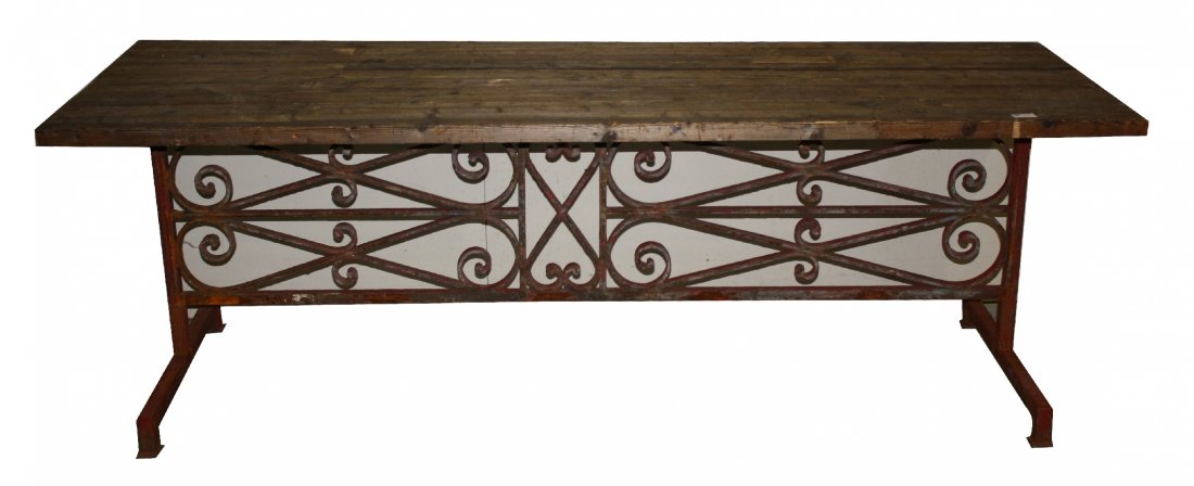 RARE FRENCH BRUTALIST TABLE HAVING A THICK FREE EDGE ELM TOP RESTING ON AN OVERSIZED IRON CHAINFeb 24, 2026SPANISH BAROQUE STYLE MAHOGANY & WROUGHT IRON DINING TABLE, 84"LFeb 22, 202619th Century Spanish Baroque Chestnut Coffee Table with Iron Stretcher6 days LeftLarge Sawbuck Table6 hrs LeftSPANISH BAROQUE STYLE OAK TRESTLE REFECTORY / DINING TABLE, 115"LFeb 22, 2026Rustic Coffee Table Iron Wood Lacquer 65 x 34 x 18Feb 20, 2026SPANISH BAROQUE STYLE OAK TRESTLE-SUPPORT REFECTORY / DINING TABLEFeb 22, 2026LARGE PINE TRESTLE TABLEFeb 21, 2026Antique Sewing Machine Base Table With Wooden Top Industrial Style3 days Left(2) SIZEABLE SPANISH BAROQUE STYLE OAK BENCHES, 117" LFeb 22, 2026MONUMENTAL RUSTIC WOOD-TOP WROUGHT IRON COFFEE TABLE, 84"LFeb 21, 2026Antique Wooden Trestle TableMar 03, 2026EARLY 19TH C. NEW ENGLAND SAW BUCK TABLE.Feb 25, 2026FRENCH MARBLE-TOP PAINTED WROUGHT IRON PATIO DINING TABLEFeb 22, 2026Renaissance Wood and Wrought Iron Trestle TableVintage French Oval Dining Table Pine Top Iron Base Country StyleMar 01, 2026