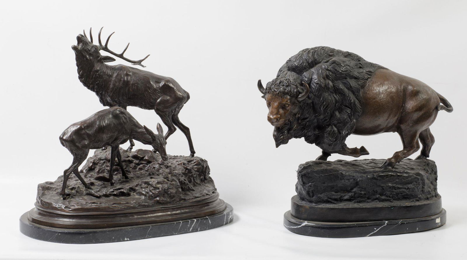 PJ Mene- Bronze Sculpture "Fighting Stag"4 days LeftSTATUE OF A BISON AFTER BARYEMar 06, 2026STATUE OF A BULL ELKMar 06, 2026Two European Bronze Table Sculptures of Hunting Dogs19 hrs LeftMilo Signed Buffalo Bronze Sculpture on Marble Base – 8.5" x 11"13 Lots AwayMAXIMILIEN LOUIS FIOT (FRENCH, 1886-1953)Mar 07, 2026Elk Attacking Bear Bronze Sculpture On Marble Base - 10" x 25"6 days LeftElk Attacking Bear Bronze Sculpture On Marble Base - 10" x 25"Mar 05, 2026Pair of Patinated Bronze Figures of Diana and OrpheusMar 13, 2026After Guillaume Coustou - Pair "Marly Horse"GroupsMar 14, 2026American Buffalo Bronze SculptureMar 06, 2026American Buffalo Bronze Sculpture2 days LeftAmerican Buffalo Bronze SculptureMar 19, 2026"Buffalo Horse" Bronze Sculpture After Frederic Remington3 days Left"BUFFALO HORSE" BRONZE AFTER FREDERIC REMINGTONMar 06, 2026Bull Standing on a Marble base Bronze Statue - Size: 19"L x 8"W x 13"H.