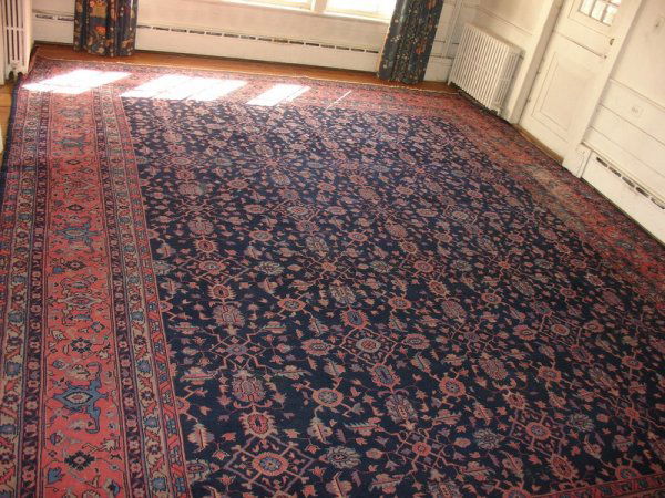 SoldVintage and Finely Hand Knotted Carpet.Large with overall blue and rust ground with a Serapi style pattern. From a Hamptons, LI estate. - Dimensions: 11ft 3" x 9ft 2".See Sold Price