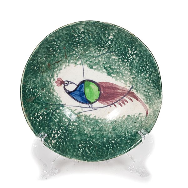 Spatterware Peafowl Saucer
