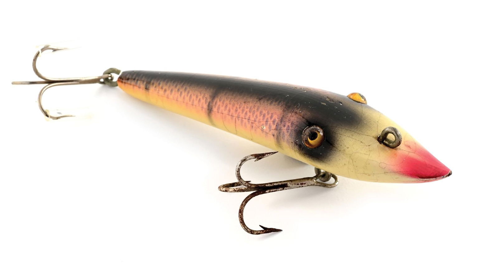 VINTAGE AMERICAN FOLK ART CARVED AND PAINTED WOOD / METAL ICE FISHING DECOYS / LURES, LOT OF THREEMar 06, 2026LOT OF SALTWATER LURES.7 days LeftLOT OF VINTAGE FISHING LURES6 days LeftLOT OF VINTAGE FISHING LURESMar 15, 2026Dace Fish Scarce Antique 1877 J. Couch Woodblock Engraving-130Brian Clinton (Australia,1940-?) gouache paintingApr 12, 2026Vintage Fishing Lure2 days LeftOscar Peterson (MI, 1887-1951), Pike Fish Decoy6 days LeftGroup of 5 Vintage fishing LuresMar 07, 2026(3) CCB Co. luresMar 27, 2026(3) CCB Co. Pikie MinnowsMar 27, 2026#74 Paw Paw WattafrogMar 27, 2026(3) CCB Co. luresMar 27, 2026Black and Gold Fish Decoy16 hrs LeftSpecial order CCB Co. BeetleMar 27, 2026#73 Paw Paw Wattafrog JrMar 27, 2026