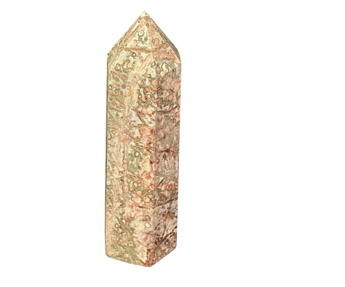 SoldSPECKLED PINK JASPER OBELISKSPECKLED PINK JASPER OBELISK 1.6 LBS Height: 6.5 in. by Width: 2 in. by Depth: 2See Sold Price