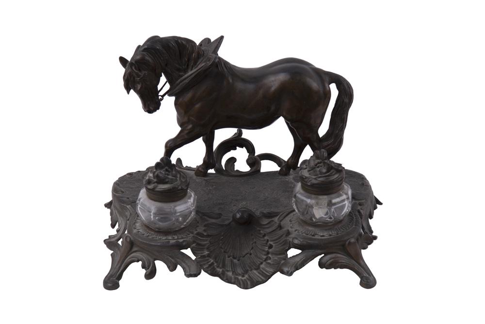 SPELTER FIGURAL DOUBLE INK STAND