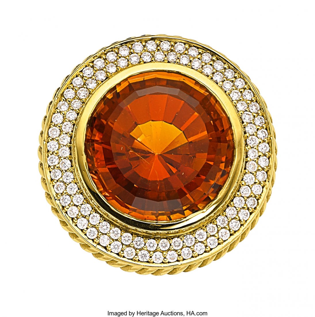 Spessartine Garnet, Diamond, Gold Ring The ring