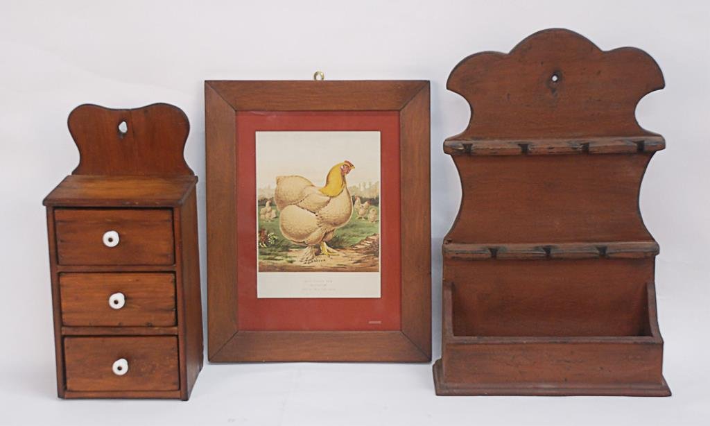 Lot of Framed PrintsMar 04, 2026Lot Wooden Items - Wicker BasketMar 04, 2026Lot Decanter - Jar- Wood ItemsMar 04, 2026Lot Wooden Boxes, Shelves, & Chalk BoardsMar 04, 2026Reed & Barton & Others Flatware Boxes 4pc LOT7 days LeftLot Picnic Basket, Shoe Shine Box, & Wooden StandMar 04, 2026Two American Pine Hanging ShelvesMar 14, 2026(3) VINCENT BROOKS DAY & SON ROOSTER LITHOGRAPHS5 days LeftCountry Shelving Unit & Two Hanging ShelvesMar 07, 2026Two Wall Hanging ShelvesMar 06, 2026Shadow Box Framed Mirror, Shadow Box Frame, & Shadow Box Framed PrintMar 04, 2026Furniture Assortment5 days LeftONE DRAWER WORKTABLE WITH TWO CANDLE STANDSMar 06, 2026GOOD 19TH C. HANGING SPICE CABINET.6 days LeftA Group of FurnitureMar 03, 2026Fine American Federal Figured Mahogany Desk & Bookcase of a smaller SizeFeb 28, 2026