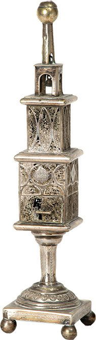 LARGE SILVER JUDAICA SPICE BOX BESAMIM TOWER, 1787