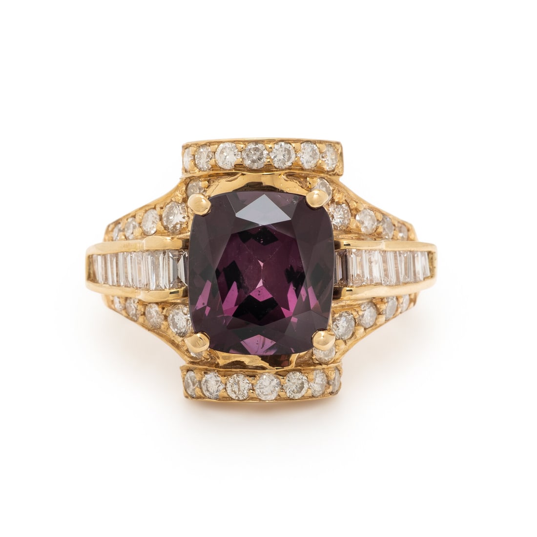 SPINEL, DIAMOND, AND YELLOW GOLD RING