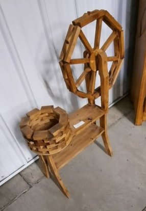 SoldDecorative Spinning Wheel PlanterApprox 38" long and wheel is approx 19" in diameterSee Sold Price
