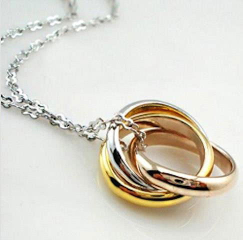 Splendid Tricolor Linked Trinity Ring Necklace, 18